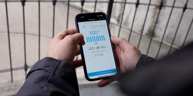 Nella schermata principale è quindi possibile ottenere informazioni sull’autonomia del veicolo, sia in elettrico che a benzina, ma anche contattare l’assistenza e prendere un appuntamento per la manutenzione ordinaria dell’automobile. Allo stesso modo, sempre dalla home screen possiamo accedere alla schermata relativa alle opzioni di ricarica, che ci consente di controllare lo stato della ricarica stessa come anche di programmare l’inizio posticipato dell’erogazione di corrente o trovare la colonnina più vicina.