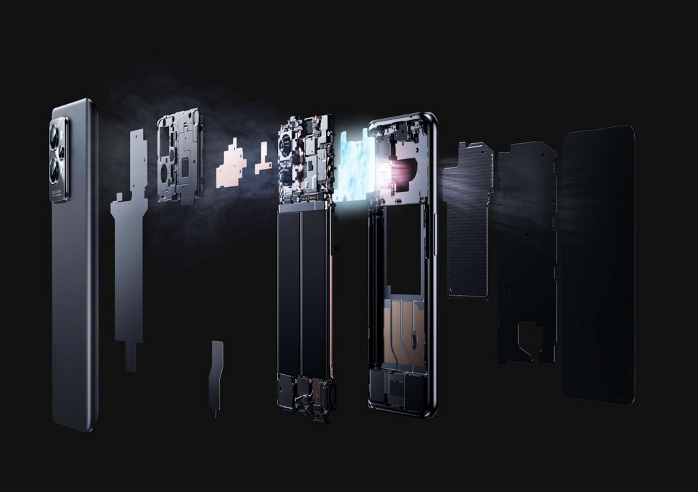 Realme l’ha chiamata Stainless Steel Vapor Cooling Max, ovvero una piastra di dissipazione di dimensioni oversize (36,761 mm²), il doppio del Realme GT Neo 2, con una camera di vapore più grande del 26%.