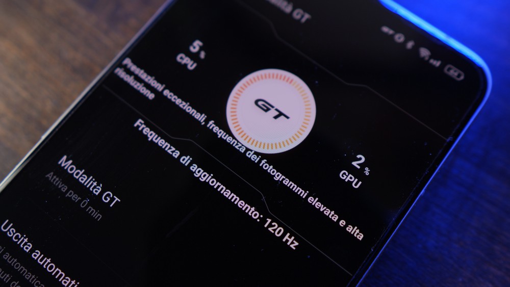 C’è poi la GT Mode 3.0, una modalità in cui viene impostato il massimo refresh rate, sampling rate e un governor “performance” per la gestione del SoC che va a chiudere un occhio sui consumi e sulle temperature, favorendo le prestazioni. Non manca anche il “Game Toolkit”, un’app multistrumento che permette di migliorare l’esperienza di gioco con controlli sulla luminosità, sulle notifiche e sulla vibrazione, compresa la funzione Vibrazione 4D che aggiunge feedback aptici dinamici specifici per l’azione di gioco.