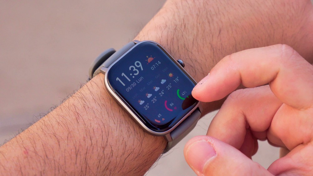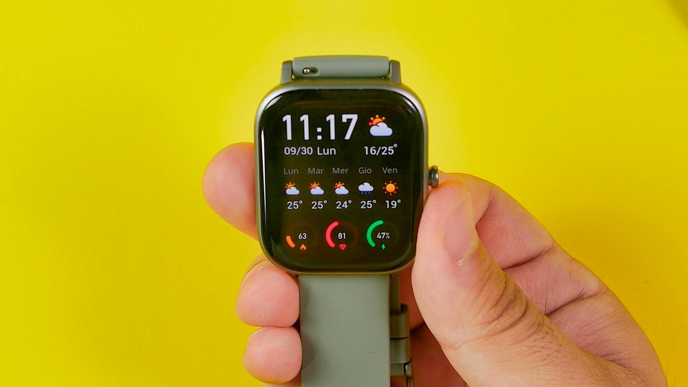Il design del GTS riprende le linee dell’iconico Apple Watch. Questa sensazione di “clone” si ferma solo alla parte frontale. Il resto del corpo sembra più ispirato ai precedenti Amazfit Bip e Bip Lite. A differenza del fratello più piccolo, la cassa è realizzata con un frame laterale in alluminio, mentre la parte inferiore, quella a contatto con la pelle, è in policarbonato. L’orologio è certificato per una resistenza fino a 50 ATM.