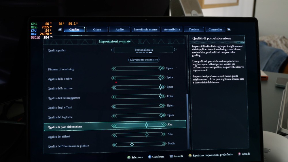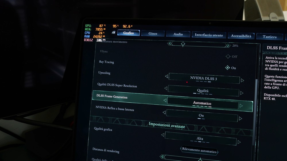 Con un F1 2024 abbiamo ottenuto circa 80fps di media con tutto alla massima risoluzione, DLSS attivo ma senza frame generator attivo, con le ulteriori impostazioni al massimo della qualità.
