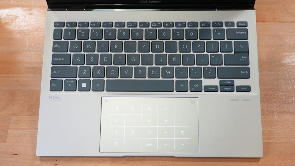 Lo stesso discorso vale per il trackpad. Le dimensioni sono generose, ovviamente in rapporto a quelle della soluzione, e la finitura in vetro contribuisce a restituire un feedback premium. Le dita scivolano molto bene e la risposta è precisa anche quando utilizziamo più dita contemporaneamente per attivare le funzione legate al multitasking. Come altre soluzioni Asus poi, questo Zenbook S13 integra il tastierino numerico nel trackpad stesso. Per attivarlo è sufficiente premere l’icona apposita per un paio di secondi e sulla superficie touch compariranno i numeri come fosse un classico tastierino numerico.