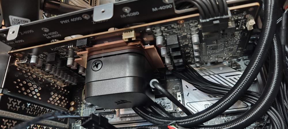 • GPU: dissipatore a liquido 240 mm con due ventole (Corsair AF120 Slim)