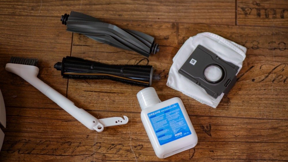 • Una box che contiene: la spazzola tri-cut, un detergente targato DREAME, una spazzola con taglierino