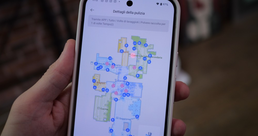 Per arrivare al 58% di autonomia residua ho effettuato una pulizia complessiva di 46m2 per la durata di 81 minuti, in profilo “CleanGenius”, quello smart. L’unica cosa che ho tenuto disattivato in tutto ciò è il lavaggio doppio delle zone con rilevamento dello sporco più presente. La casa in origine ha una superficie pari al doppio di quella pulita, 90m2. L’X40 Ultra avrebbe completato la pulizia con circa il 70% di autonomia, a volte più a volte meno.