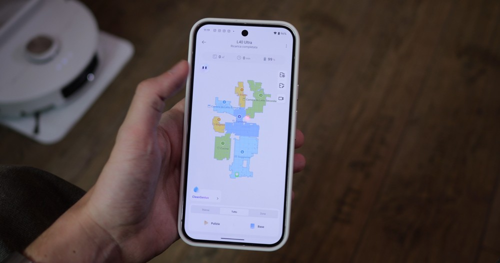 Ho utilizzato il Dreame L40 Ultra sempre con il profilo “CleanGenius”, sporadicamente con la “Pulizia Profonda” attiva che attiva un lavaggio intensivo ed una pulizia migliorata delle aree più sporche. Possiamo inoltre scegliere se effettuare l’aspirazione e pulizia o passare il mocio dopo l’aspirazione.