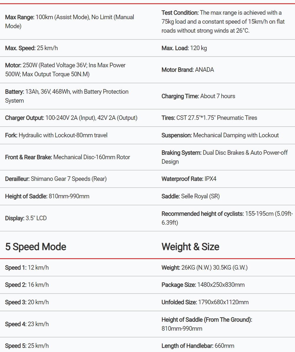 Per quanto riguarda l’autonomia, molto dipende dal peso: in generale con 70KG sopra si fanno circa 70KM con livello massimo di assistenza (ovvero 25KM/h) mentre con 90KG si toccano i 50KM. La casa dichiara 100KM con carico di 75 kg, velocità costante di 15 km/h su strade piane, senza vento forte con una temperatura di 26°C.