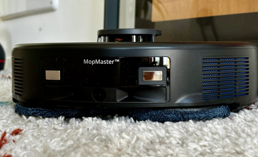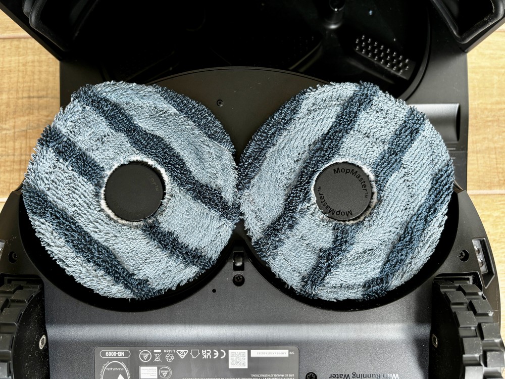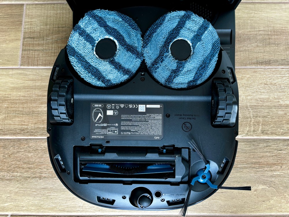 Trattandosi di un robot pensato per aspirare e anche lavare il pavimento, ci sono i consueti due blocchi: una spazzola centrale che raccoglie lo sporco e la polvere, dotata anche di un pettine che aiuta a non creare grovigli di capelli o peli di animali, e poi due panni rotanti. Questi hanno una soluzione meccanica che li alza di ben 1,2 cm quando viene individuato un tappeto, per fare in modo che non si bagni, ma soprattutto hanno una forma pentagonale che migliora la pulizia anche al centro, nel punto dove si incontrano.