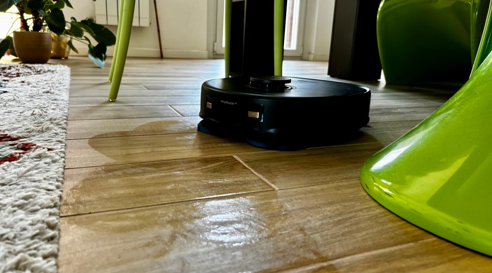 Ancora più soddisfacente il lavaggio: i due panni eseguono 180 rotazioni al minuto ma soprattutto esercitano una pressione massima di 1 Kg sul pavimento, risultando in una rimozione delle macchie davvero efficace anche senza la presenza dell’acqua calda sperimentata, ad esempio, con l’Ecovacs Deebot T20 Omni. Insomma si tratta di una soluzione efficace anche per zone della casa, come la cucina, dove le macchie sono spesso più complesse da rimuovere.