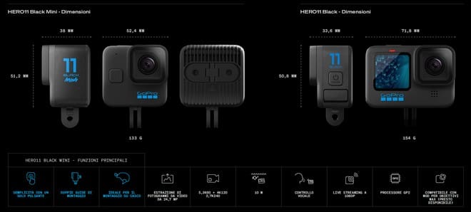 Ecco a seguire una galleria con il confronto dettagliato di tutte le specifiche tra Hero 11, Hero 11 mini e Hero 10.