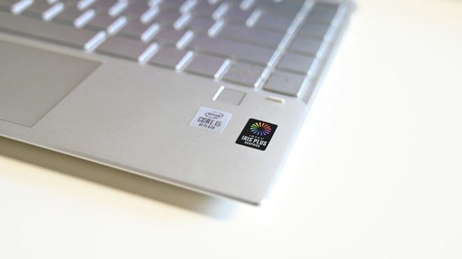 Ed eccoci a parlare della piattaforma su cui si basa questo notebook. All’interno dello Spectre X360 (2020) troviamo un processore Intel Core i5 di decima generazione, per la precisione un 1035G4, dotato di una CPU a 4 core e 8 thread con una frequenza operativa massima di 3,7 GHz. Quest’ultima è affiancata da una scheda grafica Intel Iris Plus Graphics, 8 GB di memoria RAM LPDDR4 e da un SSD PCIe Samsung da 256 GB che offre velocità di lettura e scrittura pari a 3500 e 1550 MB/s. Aprendo la scocca è possibile notare come quest’ultimo sia anche l’unico elemento aggiornabile.