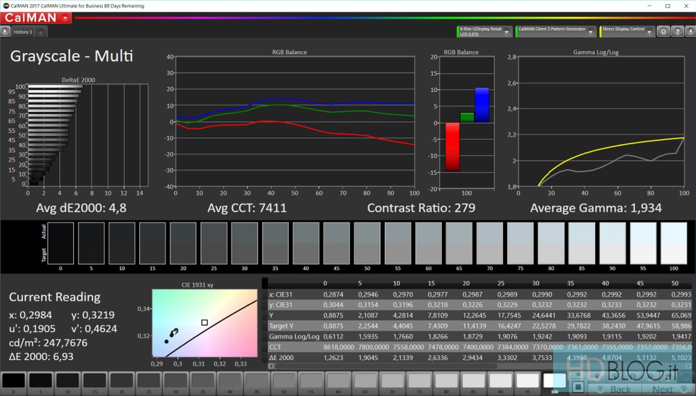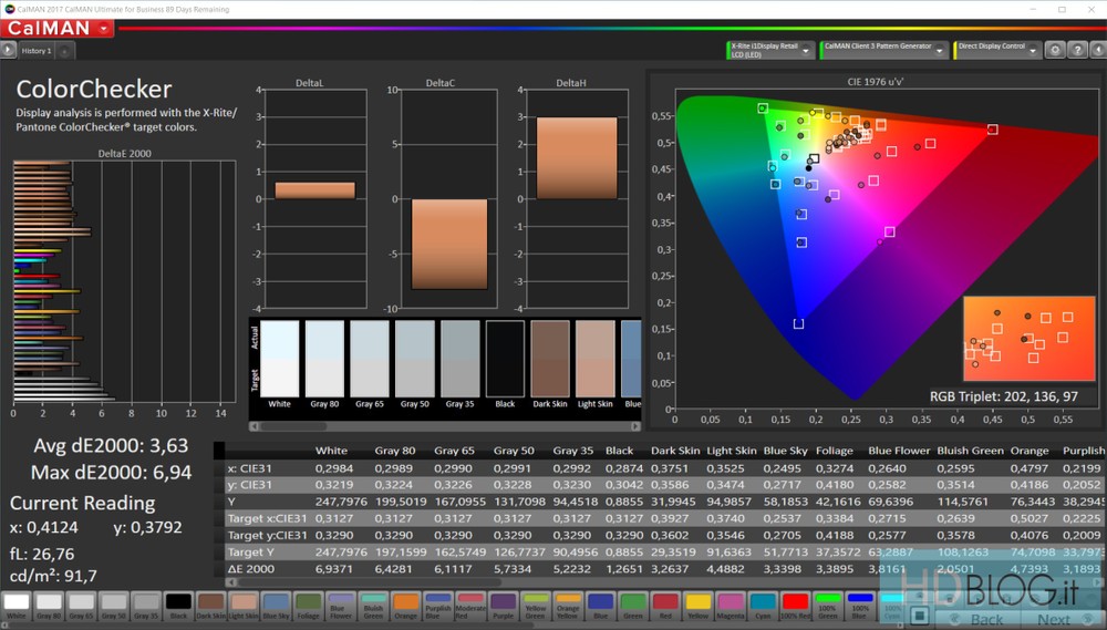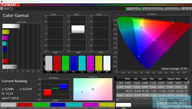 Non è probabilmente un display che viene calibrato in fabbrica ma i risultati non sono male. Abbiamo una copertura dello standard sRGB molto vicina al 100% e dei delta E di 4,8 per la scala di grigi e 3,6 per i colori. Considerato che 3 è il valore oltre il quale si riesce a percepire la differenza rispetto alla tonalità di riferimento si tratta comunque di un errore accettabile in tutti e due i casi. Abbiamo visto sicuramente dei display più precisi ma fruire di contenuti multimediali su questo pannello resta comunque un’esperienza appagante.