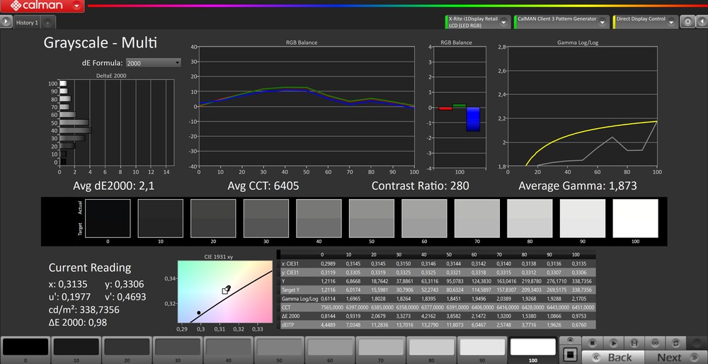 Anche dal punto di vista delle misurazioni abbiamo poi un display discreto, che si caratterizza per una luminosità massima molto vicina alle 400 cd/mq e un rapporto di contrasto di circa 1500:1. Sono valori buoni, che ci permettono di utilizzare il notebook in ambienti chiusi senza problemi. In esterna potreste avere qualche problema in più, specialmente sotto la luce diretta del sole, ma sono problemi dovuti principalmente al trattamento anti-riflesso non esattamente efficacissimo del pannello.