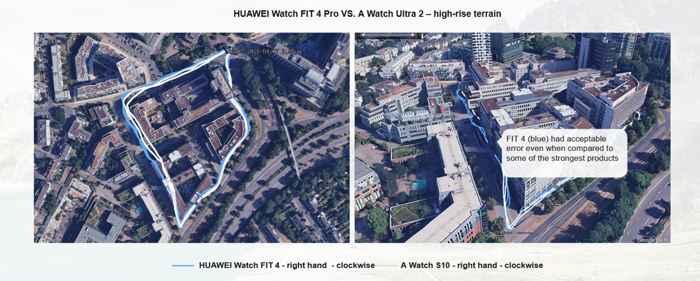 Grandissima attenzione poi anche al GPS: Huawei dichiara un incremento fino al 56% in più, come precisione, rispetto al precedente Fit 3. Questo risultato è stato ottenuto con un nuovo posizionamento “a girasole” delle antenne. Parliamo di un GPS Dual Band L1 + L5 proprio come Apple Watch Ultra, uno dei migliori dispositivi con i quali Huawei si mette proprio a confronto come precisione, dichiarando anche di riuscire spesso a far meglio. Come accuratezza della traiettoria l’azienda ci parla di un 27% come fattore di precisione in più, 28% come distanza di errore e 17% come errore sul passo di camminata/corsa.
