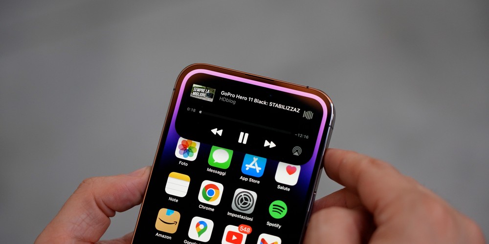 Le interazioni con la Dynamic Island sono al momento uno strumento utile ma allo stesso tempo divertente e, trattandosi della novità più curiosa, vi troverete ad utilizzarle talmente tanto nei primi giorni che alla fine entreranno da subito nel vostro quotidiano. E’ vero, l’isola è posta molto in alto e se state utilizzando lo smartphone con una sola mano può essere molto scomodo arrivarci; con due, invece, non è assolutamente un problema.