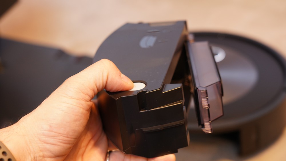 Una delle novità arrivate con il J7+ è la nuova base autosvuotante. Più compatta e con forme più squadrate ma soprattutto progettata in maniera intelligente. Il funzionamento rimane il medesimo di tante altre basi con funzione simile, ma con ingombri ridotti. iRobot usa però dei sacchetti di tipo AllergenLock, che evitano la fuoriuscita di pulviscolo e che garantiscono la massima igiene durante la sostituzione. Nel vano è incluso anche uno spazio per custodire i sacchetti extra, in modo da non doverli cercare per casa quando necessario. Simpatico il lembo in pelle griffato iRobot che agevola l’apertura dello sportello. Il costo dei sacchetti è di 19,99 euro per tre unità, ma esistono diverse alternative più abbordabili di terze parti.