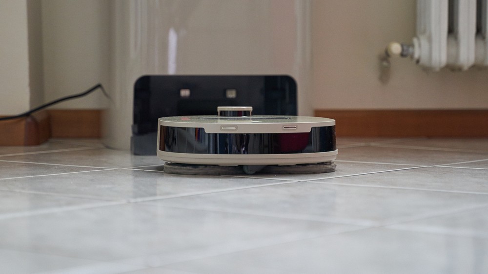 Le dimensioni compatte unite a una forma dai bordi stondati e a uno spessore di soli 7,59 centimetri, permettono al robot di raggiungere ogni angolo di casa senza grosse difficoltà. Nella parte superiore è presente la torretta che integra il sensore laser per la mappatura, coadiuvato da un sensore dToF posizionato nella parte anteriore. Un sistema che permette al robot di mappare due volte più velocemente rispetto ad altri concorrenti e di funzionare sia di giorno che di notte. La parte inferiore ingloba i due agganci per i panni controrotanti in grado di girare 180 volte al minuto oltre al sensore a ultrasuoni in grado di rilevare i tappeti. Il serbatoio dell’acqua da 260 millilitri è sempre nella parte superiore e si sgancia con una lieve pressione.