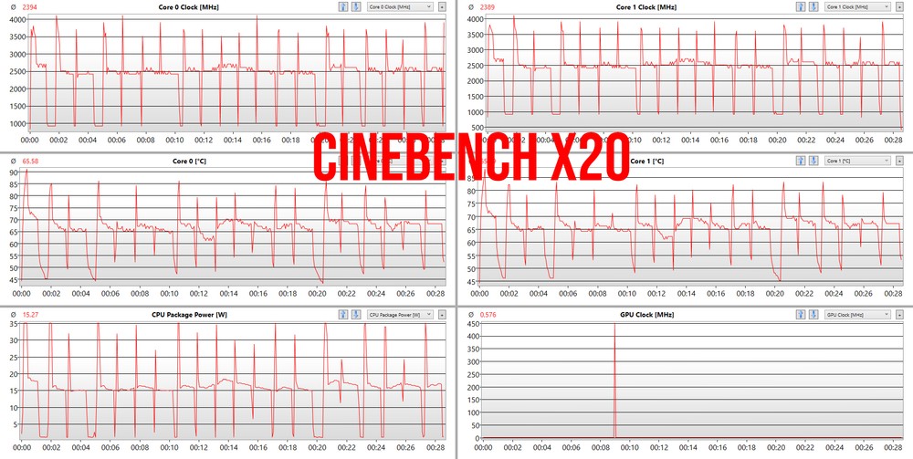 I grafici dei test mostrano un andamento tutto sommato abbastanza standard. Diciamo pure che Lenovo è stata conservativa e ha preferito mantenere un profilo che permettesse alla macchina di girare sempre a temperature molto confortevoli, privilegiando la stabilità del sistema rispetto alle prestazioni. Considerando il target penso sia una scelta intelligente e condivisibile. A testimonianza di ciò, anche durante lo stress test, con il processore e la GPU a pieno carico, la macchina è chiamata ad abbassare le frequenze dei core fino a 1.0 GHz mantenendo però temperature sempre molto contenute tra i 60 e i 70 gradi. Non ci sono quindi episodi di throttling termico e il sistema è sempre reattivo anche quando viene impegnato al massimo delle sue possibilità.