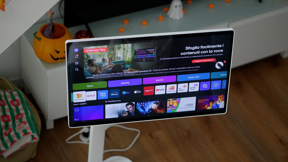 Anche il touch è una bella aggiunta, come tutto sommato il software, WebOS 24. È vero, abbiamo visto come in alcune occasioni possa risultare pesante e non perfettamente ottimizzato, ma vi offre comunque un pacchetto d’esperienza completissimo: canali “simil-TV”, app di streaming, giochi in cloud, la suite Office, piena compatibilità con AirPlay e Google Cast, due speaker (spesso assenti sui monitor), un controllo IR e il supporto a una webcam ausiliaria tramite POGO pin.