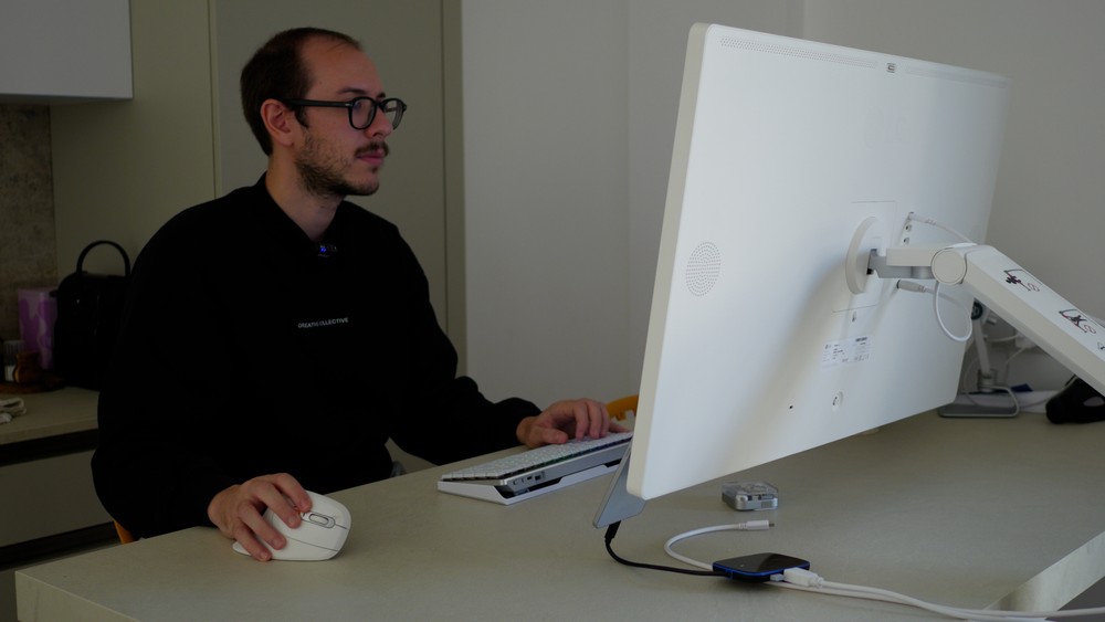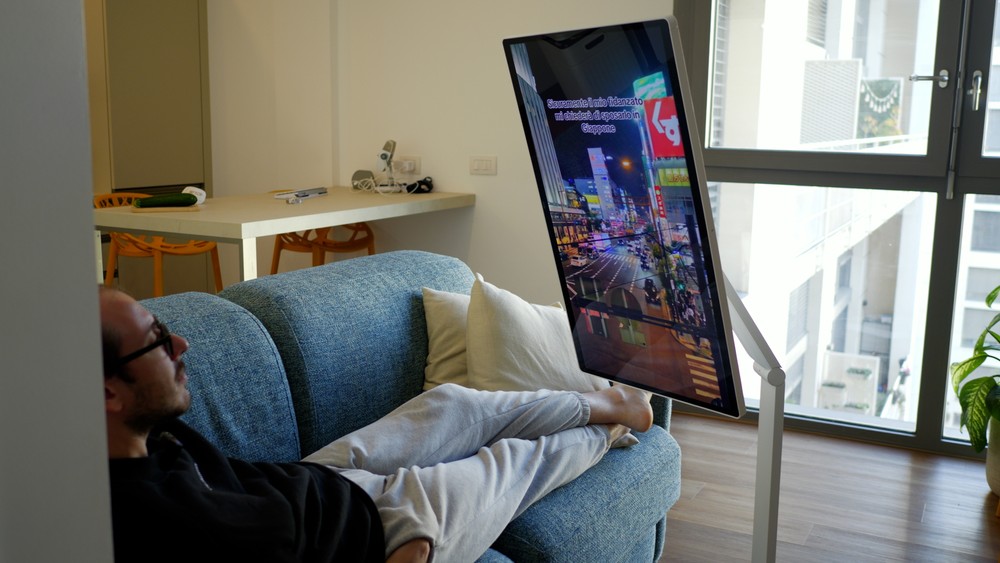 Nel nostro ufficio abbiamo una TV LG da 75″, una lavagna tradizionale e vari monitor. Tutti questi dispositivi hanno un limite: sono fissi. Con l’LG Swing, invece, abbiamo un monitor che può sostituire ognuno di essi in ogni zona dell’ufficio, inclusa la sala di registrazione, dove può fungere da secondo schermo mobile per la fotocamera. I casi d’uso sono quasi infiniti.
