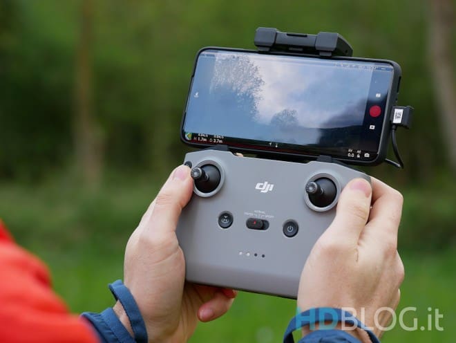 A proposito del radiocomando dobbiamo menzionare l’autonomia, da 10! Chi vi scrive ha sempre trovato un po’ risicata quella dei radiocomandi dei Mavic Pro, sempre un filo giusta. Ecco, con questo nuovo comando remoto si può star tranquilli, regge tranquillamente 3/4 ore di volo ma con una piccola ricarica (rapida via type-c) andate avanti fino alla noia. Se prevedete di rimanere fuori tutta la giornata calcolate che la batteria del controller consente almeno 6 voli completi ad esaurimento delle batterie del drone, quindi con un piccolo power bank al seguito potete volare per 6-8 ore di fila.