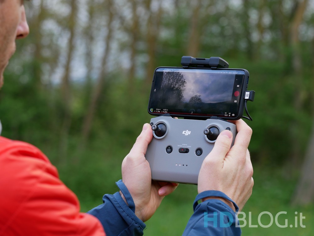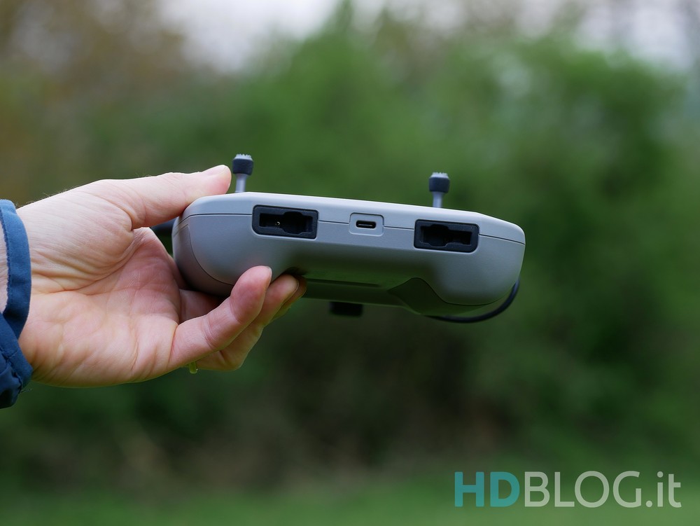 A proposito del radiocomando dobbiamo menzionare l’autonomia, da 10! Chi vi scrive ha sempre trovato un po’ risicata quella dei radiocomandi dei Mavic Pro, sempre un filo giusta. Ecco, con questo nuovo comando remoto si può star tranquilli, regge tranquillamente 3/4 ore di volo ma con una piccola ricarica (rapida via type-c) andate avanti fino alla noia. Se prevedete di rimanere fuori tutta la giornata calcolate che la batteria del controller consente almeno 6 voli completi ad esaurimento delle batterie del drone, quindi con un piccolo power bank al seguito potete volare per 6-8 ore di fila.