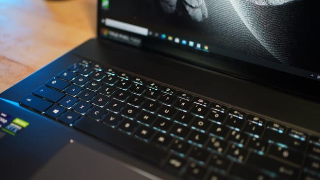 Bene anche la tastiera, ingegnerizzata in collaborazione con SteelSeries. I tasti sono correttamente spaziati e hanno una dimensione leggermente superiore allo standard. La corsa non è profondissima ma il click è netto e preciso e si capisce esattamente quando il tasto è stato attivato. La forza necessaria per l’attivazione è poi corretta e in generale si digita in maniera rapida e piacevole. Spendo poi due parole anche per il touchpad che non è enorme ma offre una buona scorrevolezza e precisione. Si possono sfruttare le gesture di sistema, che vengono ben riconosciute in ogni momento, ma diciamo che se dovete lavorare con software di fotoritocco o montaggio video il mouse resta preferibile.