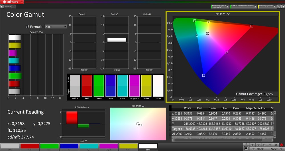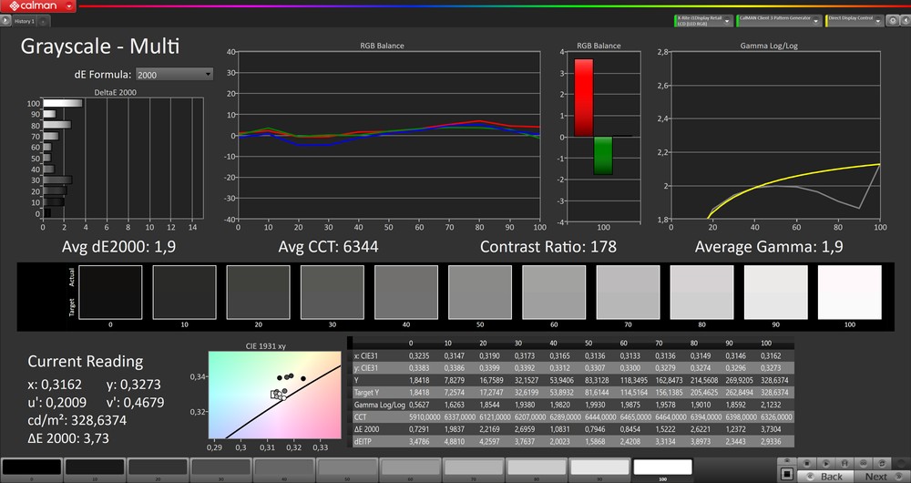 Ovviamente si tratta delle misure delle calibrazioni di fabbrica ma, se volete, potete sfruttare il tool di calibrazione automatica e una sonda xRite per calibrare il vostro singolo modello in pochi semplici passaggi.