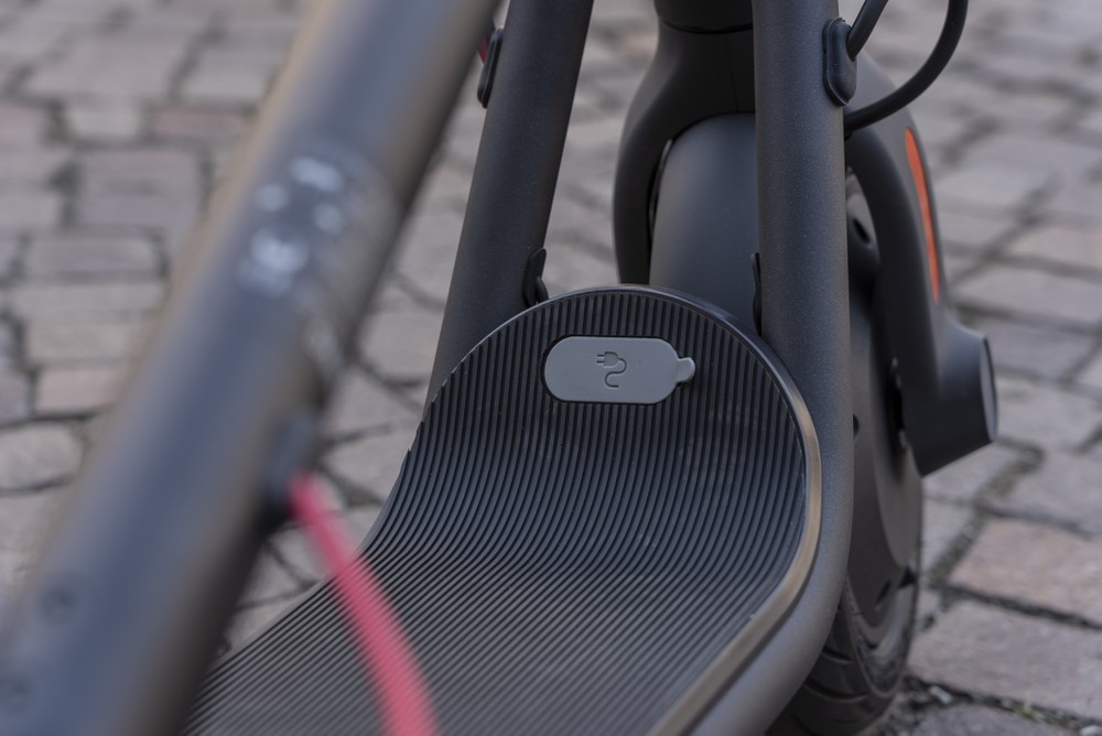 Bella la pedana che oltre ad essere ampia ha un rivestimento gommato anti scivolo ottimo anche in caso di pioggia. Approvato anche il posizionamento dell’ingresso per la ricarica che non è a lato (facile da sporcare andando), ma posizionato sopra la pedana e molto più comodo e pratico.