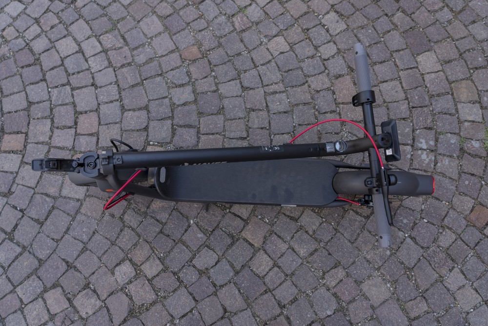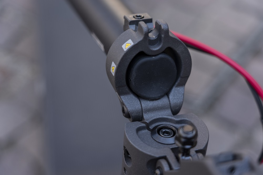 Infine l’alloggiamento per l’Airtag è una cosa che non mi aspettavo. Chiudendo il monopattino nel modo più classico, si può inserire un Airtag all’interno di un piccolo case in silicone che “scompare” nel braccio che sostiene il manubrio. Una soluzione molto efficace che ci consente di localizzare facilmente il nostro monopattino.