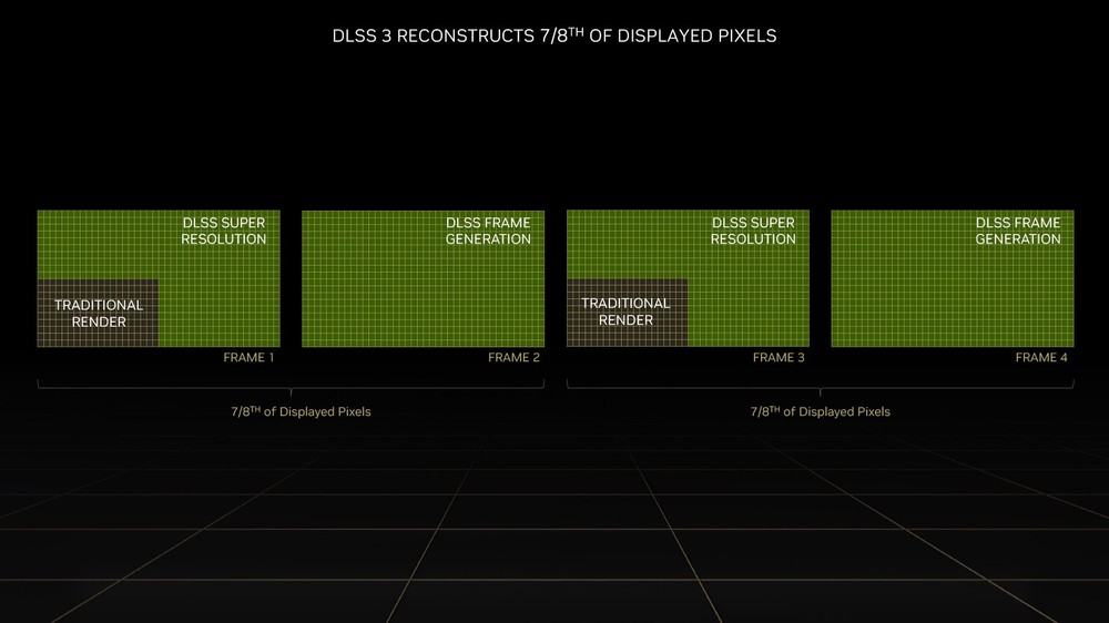 Altra novità, tra le più importanti delle GeForce RTX 4000 possiamo dire, è il DLSS 3.0 (ne abbiamo parlato QUI), l’ultima incarnazione dell’ormai nota tecnologia di super sampling NVIDIA basato sull’AI, che promette un balzo prestazionale che può arrivare sino a quattro volte rispetto alle GPU Ampere con DLSS 2.0. Il DLSS 3.0 punta tutto sui nuovi Tensor Core di Quarta Generazione e su elementi come l’ Optical Flow Accelerator (OFA) e Optical Multi Frame Generation, con quest’ultimo capace di generare interi frame di transizione; il tutto poi è abbinato alla tecnologia NVIDIA Reflex per abbattere i tempi di latenza e garantire così un’ esperienza utente ancora migliore e più fluida. NVIDIA DLSS 3.0 debutta oggi con la GeForce RTX 4090, oltre ai 35 giochi compatibili già annunciati presto sarà supportato da diversi altri titoli.