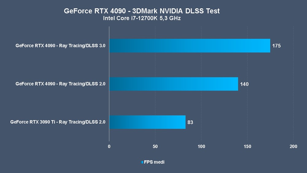 Per il momento abbiamo testato il DLSS 3.0 sul benchmark dedicato del 3DMark e Cyberpunk 2077, titoli che in entrambi i casi danno ragione a NVIDIA riguardo il miglioramento offerto dalla nuova versione del DLSS. Sul titolo di CD Project assistiamo, almeno per il momento e in attesa di nuove release – a un incremento del framerate del 125%, percentuale che si assesta al 110% se prendiamo in considerazione il benchmark targato UL. Ribadiamo che torneremo più avanti sull’argomento DLSS 3.0, ma almeno per adesso non possiamo che confermare i dati forniti da NVIDIA.