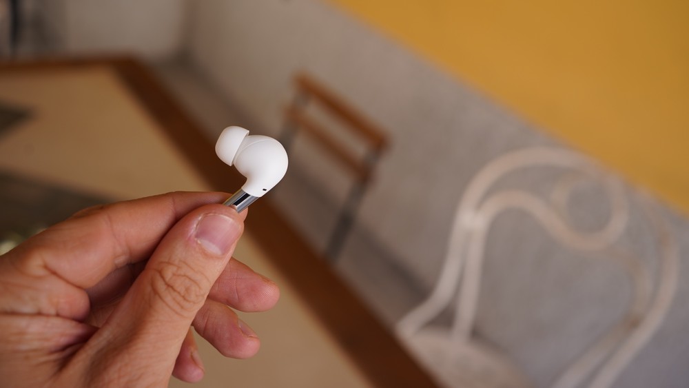 Cominciamo subito parlando della costruzione, del design e di come queste cuffiette stanno all’orecchio. Non penso ci sia bisogno che vi dica quale altro paio di auricolari mi ricordano. Il disegno e le forme, specie nella colorazione bianca a mia disposizione, portano immediatamente alla mente le Airpods Pro di Apple. Anche le dimensioni sono molto simili mentre il peso, circa un grammo in meno per ogni cuffia, le rende forse anche più comode della controparte “made in Cupertino”. Diciamo pure che se non fosse per la doppia finitura lucida-opaca, la versione bianca potrebbe essere tranquillamente confusa con il modello Apple.