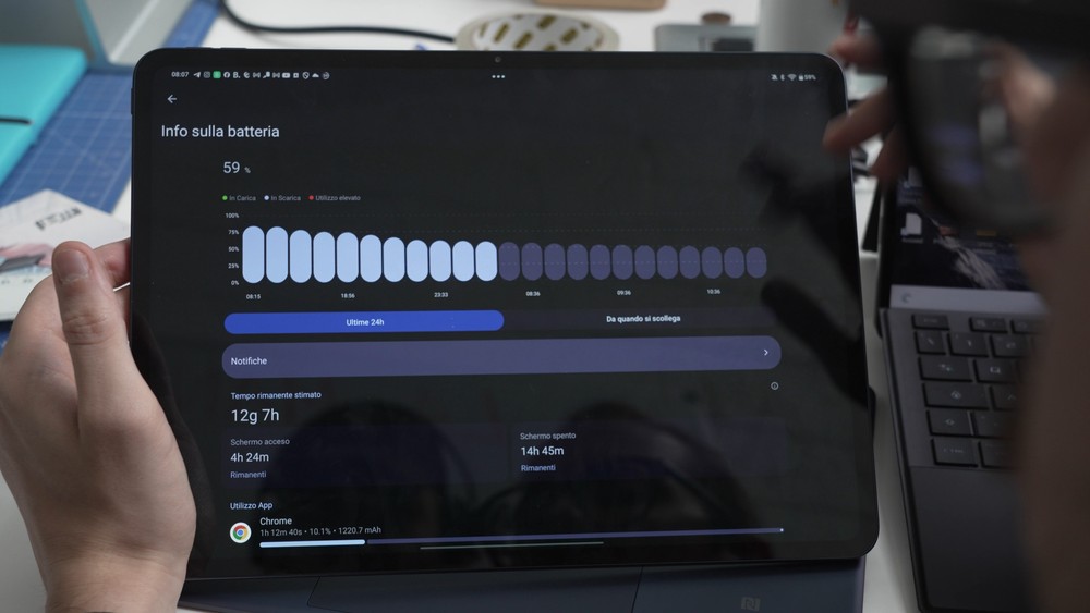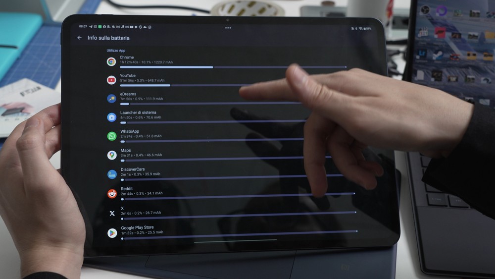 La batteria è da 12140mAh e supporta una ricarica rapida fino ad 80W. Quando vi troverete con il tablet completamente scarico ci vorranno quindi “soltanto” 90 minuti per tornare al 100%, non male! Ma la cosa che più di tutti mi ha stupito è l’autonomia: in standby il tablet consuma pochissimo, quasi nulla, e ciò significa poterlo lasciare anche una settimana intera sul vostro tavolo da salotto e trovarlo ancora interamente carico.