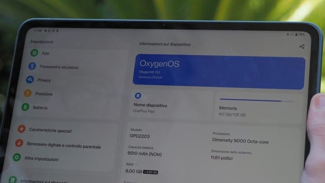 Avendo tirato in mezzo la Oxygen direi che è il momento giusto per parlare di software, essenziale per un tablet e qui troviamo una versione leggermente rivisitata ed ottimizzata della OxygenOS/ColorOS che non mi è dispiaciuta affatto, anzi vi dirò forse questa interfaccia grafica la trovo più azzeccata su prodotti di questo tipo che su smartphone. La tendina delle notifiche con a sinistra tutti i toggle rapidi è fatta benissimo come anche tutti i menù e sottomenu delle impostazioni generiche, le funzioni di divisione schermo e finestre flottanti sono state ottimizzate ancor di più seppur il problema in questo caso rimane Android con i suoi limiti evidenti.