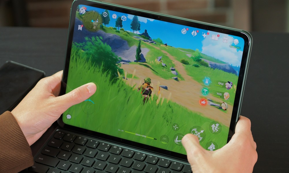 Usare il OnePlus Pad è stato un piacere grazie al MTK Dimensity 9000, 8GB di RAM LPDDR5X e 128GB di storage UFS 3.1. Parto dalla cosa che mi è piaciuta meno ovvero i soli 128GB di storage: troppi pochi se pensate di fare un uso di editing video perché con le mie solite app installate, un gioco come Genshin Impact ed un progetto video 4K su Adobe Rush ho praticamente già saturato la memoria per intero. Su un prodotto così forse 256GB sulla versione base sarebbero stati più adeguati. Escluso questo elemento, posso tessere solo lodi alla scelta del Dimensity 9000, un SOC che si è dimostrato affidabile in ogni circostanza e che ha reso l’esperienza di utilizzo sempre fluida e piacevole mantenendo però temperature basse e senza drain batteria, probabilmente molto più di quanto avrebbe fatto una CPU equivalente Snapdragon. Videogiocare con questo OnePlus Pad è stato gradevole, anche dopo più di un’ora a titoli impegnativi come Genshin Impact non ho notato surriscaldamenti particolari con la batteria che ha toccato un massimo di 27-30°C e la superficie in metallo esterna che al centro era al più leggermente tiepida.