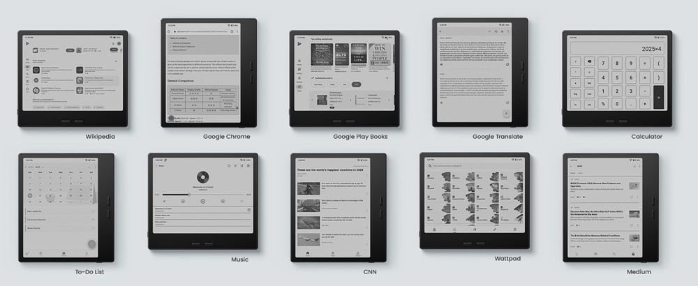 Il Google Play Store è preinstallato e pienamente funzionante, una caratteristica ancora rara nel mondo degli e-paper, e consente l’installazione di qualunque app compatibile: dai classici client di lettura come Kindle, Kobo, PocketBook, Libby, ReadEra, alle app per manga e fumetti digitali come Shonen Jump e VIZ, fino a browser come Chrome o Firefox, servizi cloud (Dropbox, OneDrive, Google Drive) e strumenti di produttività, dizionari, lettori RSS o client email. La compatibilità non è limitata ai soli contenuti di lettura: l’apertura del sistema permette anche la gestione di file manager avanzati, app per l’annotazione dei PDF, tool per la sincronizzazione e applicazioni vocali.