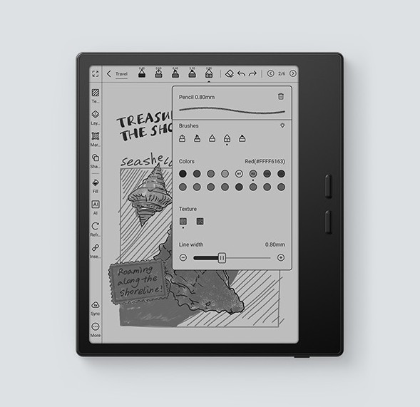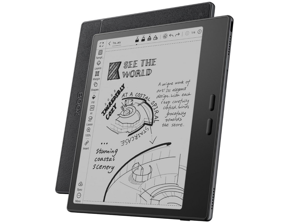 Nonostante questi limiti hardware, il software di scrittura e annotazione rimane uno dei migliori nel panorama e-ink. L’app Note di Onyx, ereditata dai modelli superiori della serie Note e Tab Ultra, offre una suite completa di funzionalità: supporto alla pressione, livelli di disegno, righelli, forme geometriche, tabelle, trascrizione del testo in tempo reale, riconoscimento OCR, registrazione audio sincronizzata e — novità — strumenti AI per il perfezionamento automatico di schizzi e scritte a mano. È possibile creare un indice dei contenuti personalizzato, esportarlo in PDF mantenendo le gerarchie, e sincronizzare gli appunti su cloud europei, americani o cinesi.