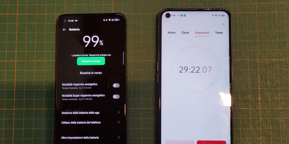 Pensate che per passare da 0 al 100 percento, con lo smartphone acceso, bastano esattamente 29 minuti e 42 secondi, con uno sprint iniziale che permette di raggiungere il 10% in soli due minuti e il 25% in cinque minuti.