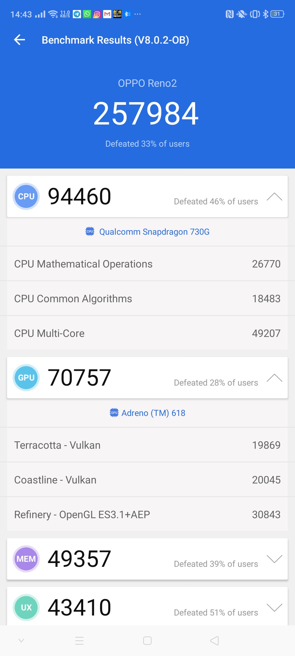 La ColorOS 6.1 è poi reattiva in tutte le operazioni, grazie a Snapdragon 730G non abbiamo certo dei compromessi in termini di capacità di calcolo e 8GB di RAM sono più che sufficienti. Basta uno swipe con tre dita sul display per dividere lo schermo in due, soluzione rapida e funzionale che vorrei vedere su tanti altri Android.