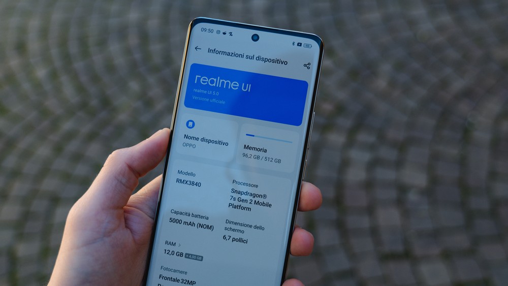 - interfaccia utente: realme UI 5.0 con Android 14