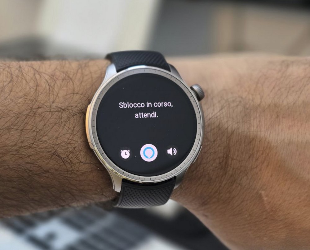 Essendo collegato ad Alexa, Ring Intercom condivide tutte le funzionalità anche con device terzi che hanno accesso alle opzioni vocali. Nell’esempio sopra utilizzo un Amazfit Balance per aprire il portone direttamente dell’orologio senza dover aprire l’applicazione Ring o l’app Alexa sullo smartphone. Una caratteristica che potrebbe essere comoda in alcuni contesti e momenti.