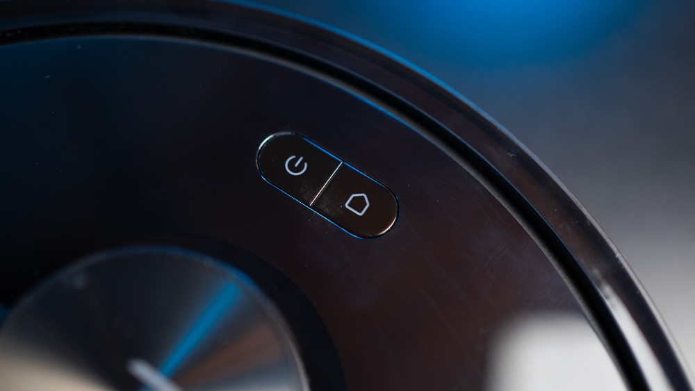 Sulla scocca troviamo due pulsanti fisici: uno per l’accensione e avvio della pulizia, l’altro per il ritorno alla base di ricarica.