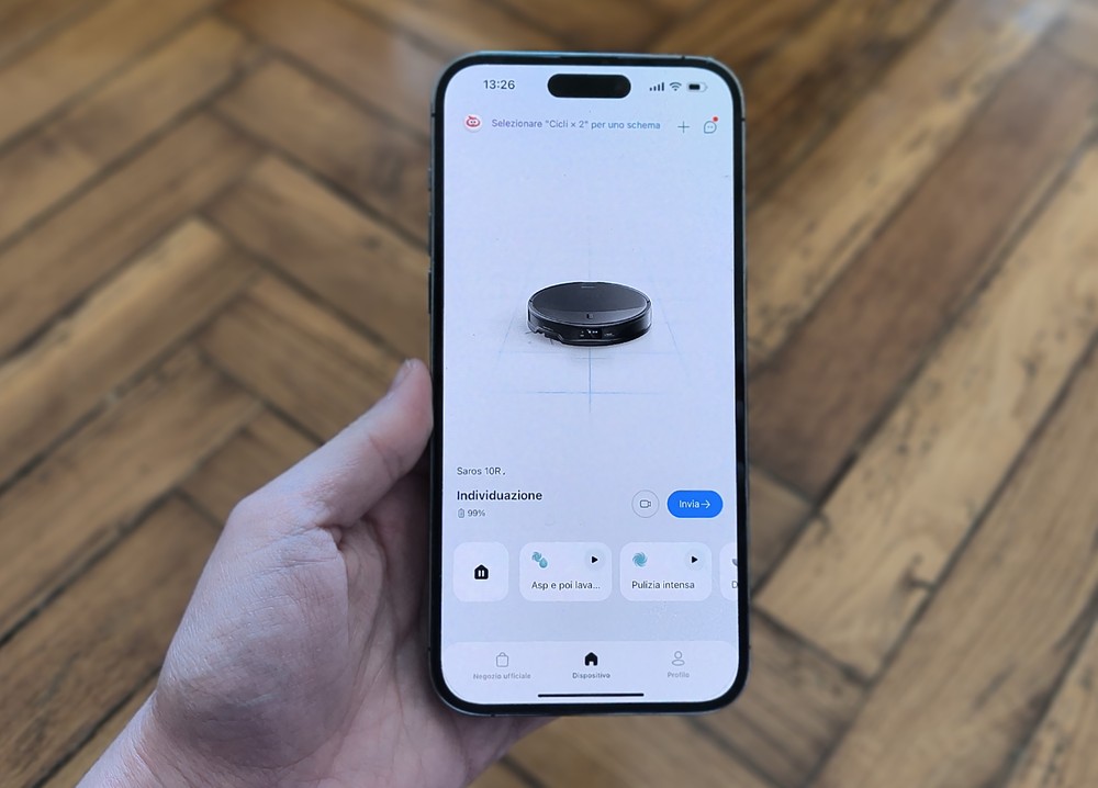 L’aspirazione è efficiente e silenziosa, al punto che ho potuto anche fare delle videochiamate di lavoro col robot in sottofondo senza che ciò disturbasse gli interlocutori dall’altra parte. Ottimo il sistema di navigazione – è lo stesso StarSight 2.0 presente sul top Saros Z70, quello col braccio meccanico per raccogliere oggetti – che usa una tecnologia 3D a doppia luce e telecamere RGB potenziate dall’AI. Crea una mappa molto precisa e permette al Saros 10R di funzionare anche al buio e muoversi senza problemi in ambienti complessi, evitando con destrezza i cavi che solitamente finivano per intrappolare il precedente aspirapolvere.