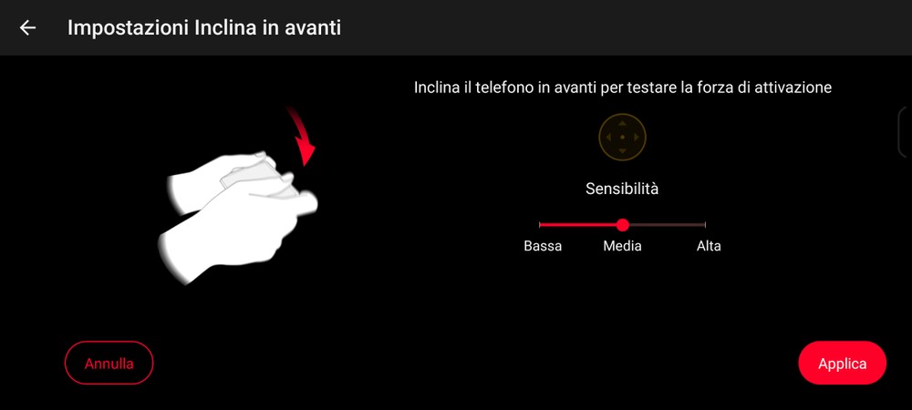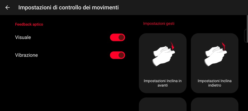 - Oltre ai Trigger fisici, Rog 8 offre anche dei trigger virtuali che possono essere configurati come fossero dei tap sullo schermo. In particolare inclinando a destra o sinistra o in basso/alto, potete creare un’zione sullo schermo che farà, per esempio, saltare il personaggio, attiverà una schivata o magari una corsa veloce.