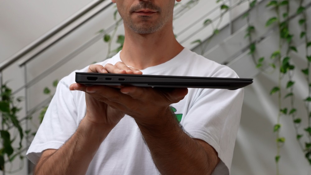 Ciò che, tuttavia, lo rende particolarmente interessante, è sicuramente il suo ingombro. Non è infatti semplice trovare dei notebook che integrino questo hardware ma riescano al contempo a garantire delle dimensioni di questo genere. Lo spessore, in particolare, è di soli 16,5 mm, mentre il peso arriva a poco meno di 1,8 Kg. Ovviamente non sono dati da record per un notebook in generale, ma se consideriamo le soluzioni con pannelli da 16 pollici e soprattutto dotati di questo tipo di hardware le cose cambiano drasticamente ed è quasi impossibile trovargli un rivale. Lo stesso MacBook Pro da 16 pollici è infatti leggermente più spesso e decisamente più pesante.