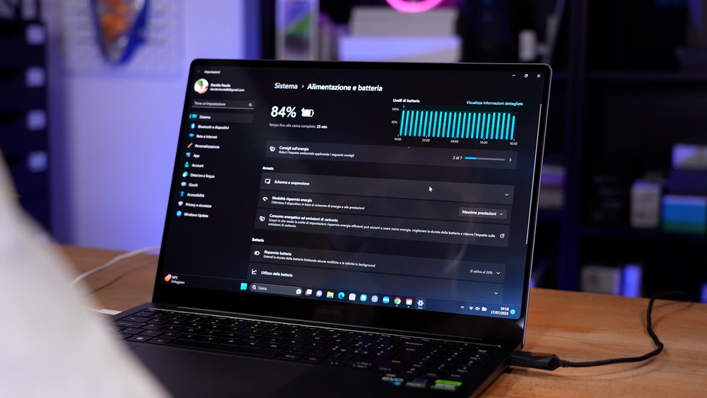 Prima di parlare di batteria e quindi dell’autonomia, è giusto poi spendere due parole a proposito del software. Il sistema operativo è infatti il classico Windows 11 ma, sin dalla prima accensione troviamo a bordo una serie di applicazioni Samsung che, di fatto, rendono questo notebook una scelta quasi obbligata se avete nel vostro corredo altre soluzioni dell’azienda coreana, specie se si tratta di smartphone o tablet.
