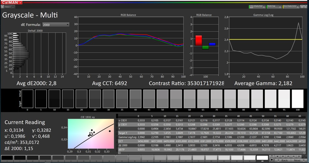 La misurazione tramite colorimetro effettuata con l’ausilio del software Calman mostra poi anche una buona precisione nella riproduzione dei colori. Nella modalità colori “Naturali” abbiamo infatti dei valori molto bassi del delta E sia per la scala di grigi che per i colori. Come ben sappiamo la soglia della tolleranza è fissata a 3 e in tutti e due i casi si registrano dei risultati decisamente inferiori. Oltre a questo, è giusto sottolineare anche l’ottima copertura dello spazio colore sRGB, molto vicina al 100%. Insomma, un ottimo pannello per godere al meglio di tutti i contenuti multimediali, siano essi video, serie TV, ma anche giochi e film in streaming.