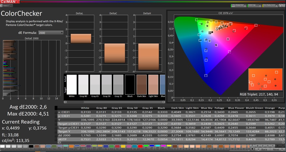 Come da tradizione Samsung parliamo di un pannello davvero ottimo. I colori sono brillanti, i neri ovviamente profondissimi e il contrasto molto elevato. Tutto questo porta a una esperienza visiva assolutamente appagante. Il display si vede bene in tutte le situazioni, anche all’aperto sotto la luce del sole. Merito ovviamente del contrasto elevato ma anche della luminosità massima che sfiora le 400 cd/mq con picchi vicino alle 500 cd/mq.
