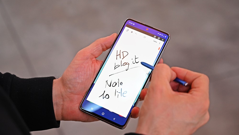 E veniamo a parlare un secondo del software, ma sopratutto della S-Pen. Ovviamente questo Note 10 Lite è basato su Android 10 con interfaccia personalizzata One UI in versione 2.0 e dotata di tutte le funzionalità software legate alla S-Pen che troviamo anche su Note 10 e Note 10 Plus. Proprio questa è la nota positiva: non ci sono differenze rispetto ai due top di gamma e quindi l’esperienza d’uso che ne deriva è esattamente la stessa. Potete prendere appunti, disegnare, realizzare GIF con scritte animate da condividere con gli amici e molto altro ancora.